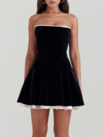 Elevate your wardrobe with the Black Velvet Strapless Dress and embrace timeless beauty.