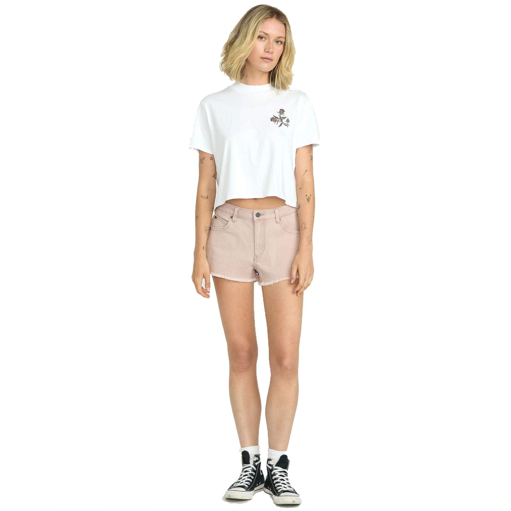 Channel vintage vibes in these slouchy high-waisted denim shorts with a zipper fly, Volcom’s branded coin pocket, and a soft, stretchy cotton-poly blend for all-day comfort.